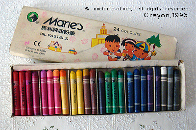 於是保存年代最久遠,最完整的畫具就是這套二十四色蠟筆.....用了十幾年都還這樣.......