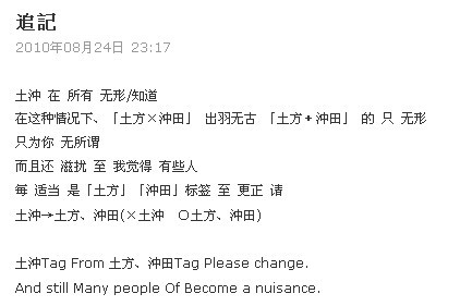 而且還收到了位日本妹子的信件,大概是讓我改標籤....把「土沖」訂正成「土方」「沖田」