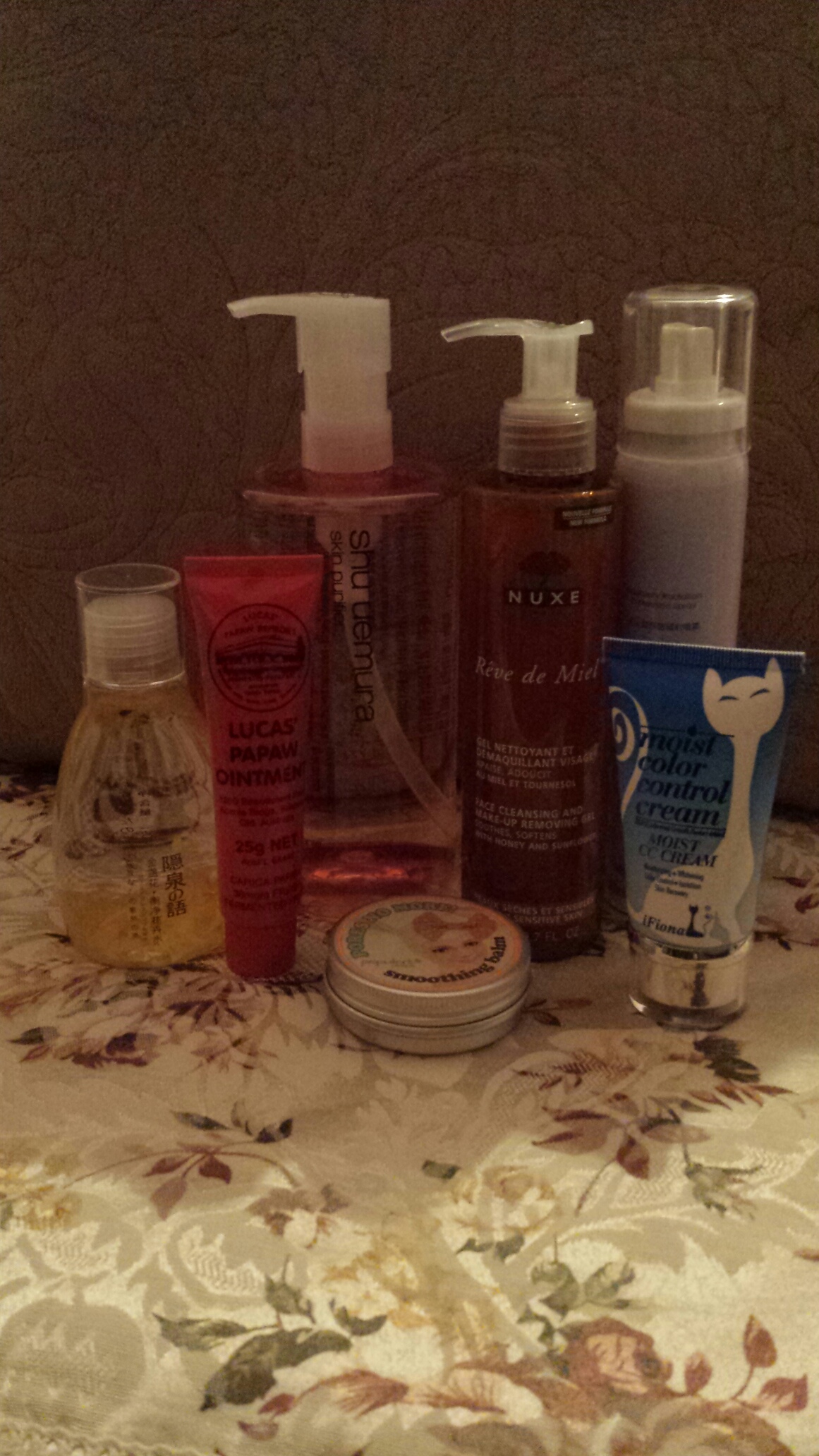 藍後植村秀換成大桶的了。。。其他的還沒用。。。藍後那個萬能膏。。。萬能到燙傷可以抹脣干可以抹手裂可以抹蚊蟲叮咬可以抹熬夜黑眼圈可以抹。。。就連痔瘡。。。都可以臥槽。。。